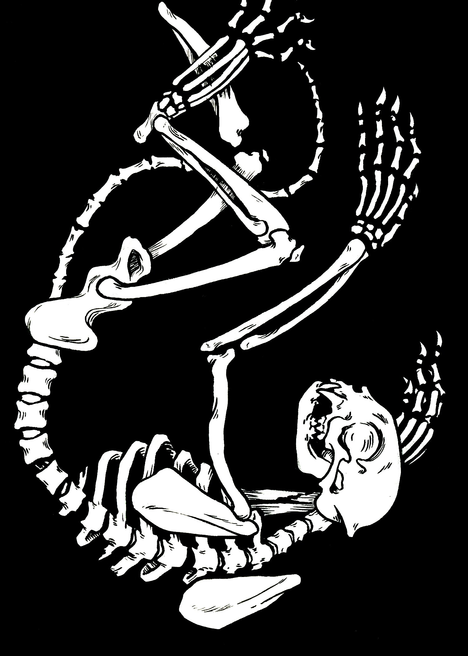 The third in a series of skeleton illustrations, depicting some probably completely normal cat bones.